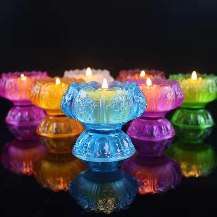 Colorful Lotus Crystal Glass Ghee Lamp Holder for Buddha Offering