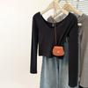 Real shot diagonal neck off-the-shoulder long-sleeved T-shirt women's early autumn slim-fit bottoming shirt with a solid-color top inside