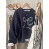 Huamian real shot vze crew neck sweater women's season loose bow embroidered top