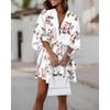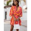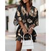 Damska Falbaniasta Sukienka na Imprezę Plażową Vestidos Kobiety Seksowne Mini Sukienki z Dekoltem V Letnie Boho Codzienne Sukienki z Kwiatowym Wzorem i Rękawami Nietoperzowymi