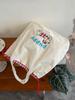 Korean cute puppy embroidered shoulder bag new college style drawstring tote bag large capacity versatile canvas bag