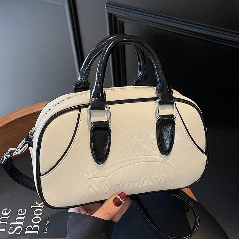2025 new Korean simple contrasting color portable Boston bag casual commuting versatile foreign style niche messenger women's bag