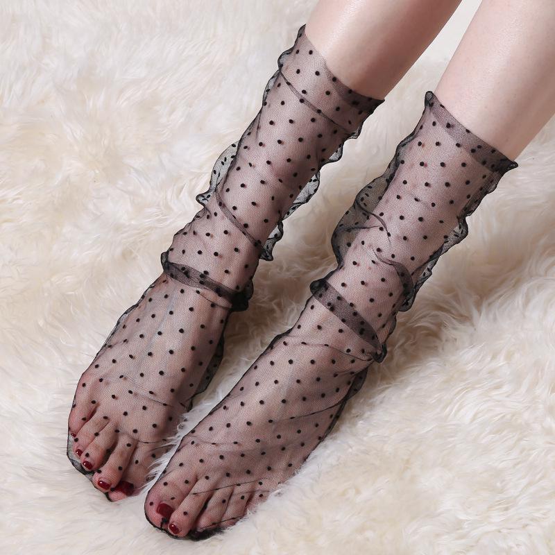 Lace Polka Dot Mesh Mid-Calf Socks - Ultra-Thin, Transparent Invisible Summer Style for Women