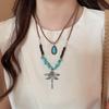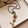 Retro Ceramic Glazed Stone Heart Pendant Necklace - Elegant Fashion for Women