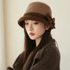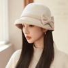 Damski kapelusz rybacki z filcu wełnianego: Jesień/Zima Francuski Retro Styl Hepburn z Kokardą