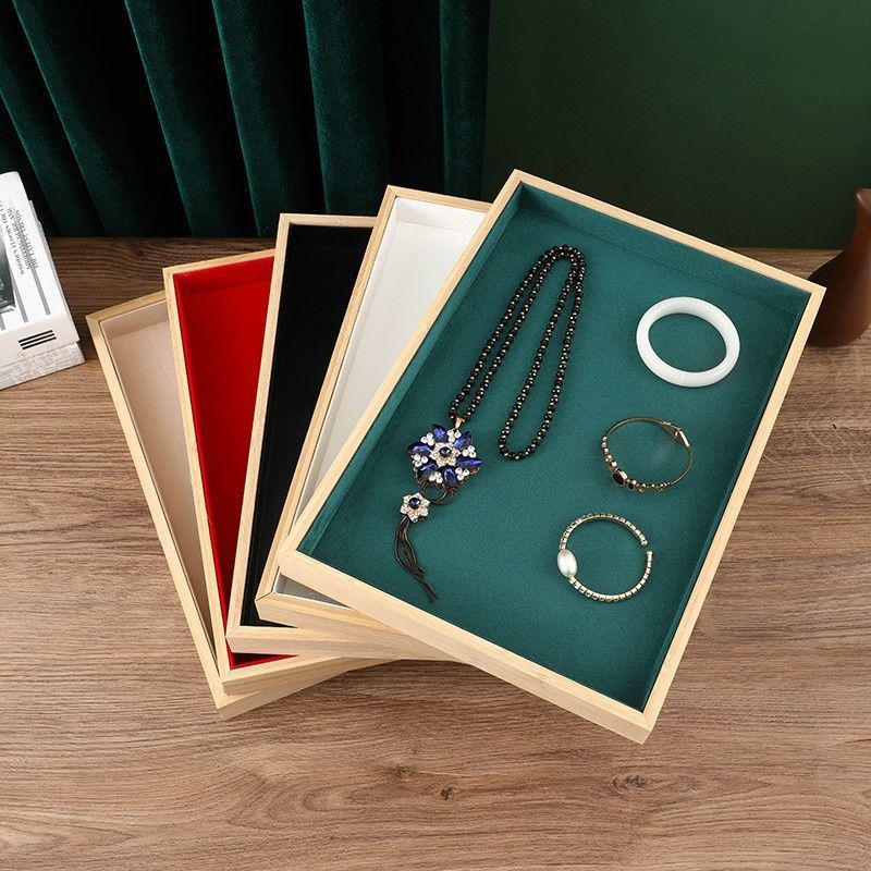 Bamboo Jewelry Display Tray with Velvet Lining for Bracelets & Necklaces