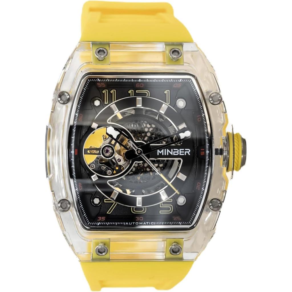 MINBER Automatyczny Szkieletowy Luksusowy Sportowy Srebrny i Męski Zegarek, Zegarek, Biznesowy/Codzienny, Żółty, M9027G-YW
