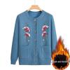 Ciepły jesienno-zimowy sweter dla kobiet w średnim i starszym wieku - dzianina z haftem, z aksamitną podszewką