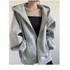 Women Loose Hooded Sweatshirt Jacket Fall Solid Zipper Long Sleeve Coat Oversize Vintage Hoodies Casual Wear