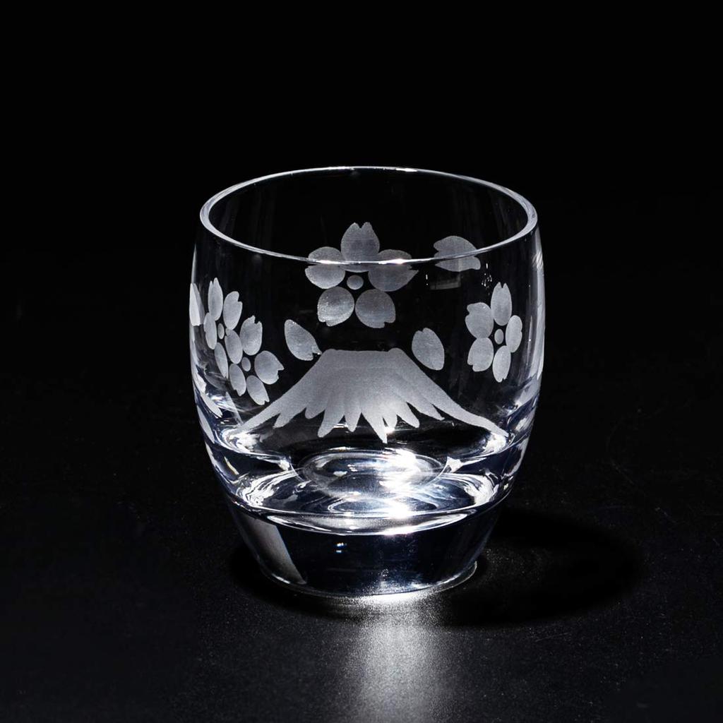 [Official Taiburo Studio] Edo Kiriko Mt. Fuji and Cherry Blossom Chilled Sake Glass TB0050-33, Paper Boxed, Made in Japan