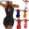 BITCED Fall Women's Solid-Color Slim-Fit High-Waisted Streetwear Halter Backless Dress