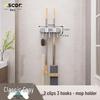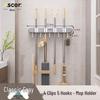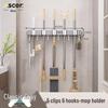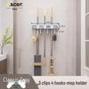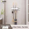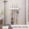 Wieszak ścienny na miotłę i mop: Rozwiązanie do zawieszania bez wiercenia na drzwiach łazienkowych lub toaletowych.