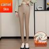 Damskie skórzane spodnie z wysokim stanem, podszyte polarem z wełny jagnięcej: Wyszczuplające, wiatroodporne, ciepłe legginsy
