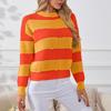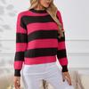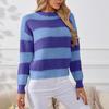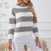 Damski sweter w paski, luźny i swobodny, pulower z długim rękawem, dzianinowy top z okrągłym dekoltem
