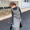 Zimowa sukienka z imitacji dwóch części z sztruksu Stylowa sukienka damska Marszczenia ze sznurkiem Sukienka z wąską talią Damska retro Długość za kolano / do połowy łydki