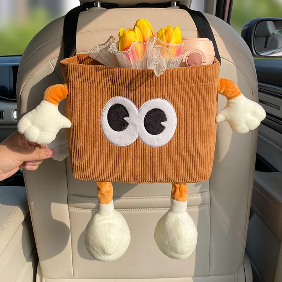 Car Trash Can Tissue Box Cartoon 2-in-1 Car Umbrella Storage Bin Auto Seat Back Hanging Storage Bag Backseat Cup Holder Holder