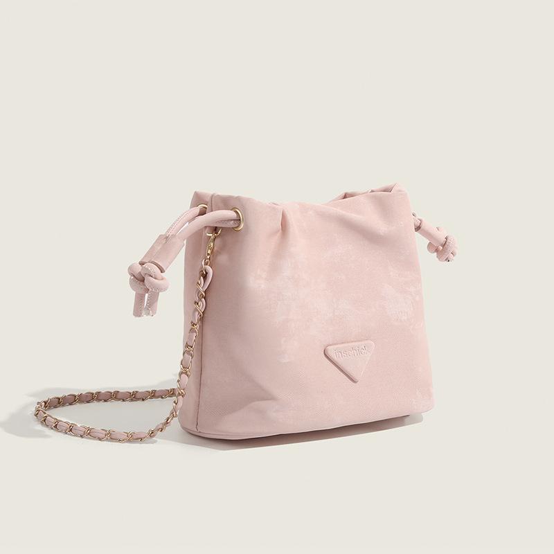 Puff Drawstring Bucket Bag for Women 2025 Fashion Pink Chain Shoulder Crossbody Bag Ins Style Simple Cloud Bag