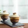 Retro Style Rough Pottery Kung Fu Tea Set, Wood Fired Tea Bowl with Lid, Household Single Sancai Large Kung Fu Tea Tureen