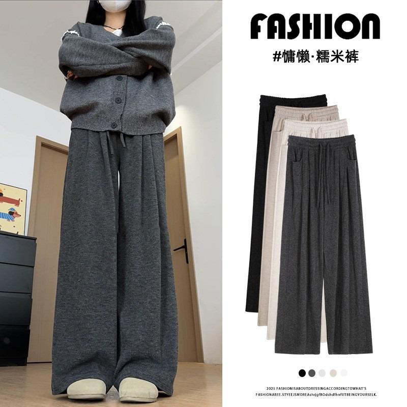 Narrow version wide-leg pants women's new high waist drape straight loose lazy soft waxy small glutinous rice pants