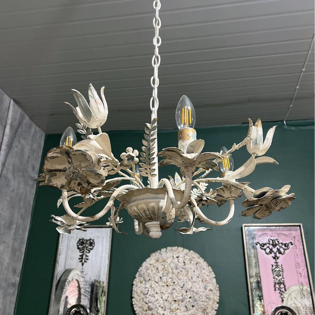 Retro francuski żelazny świecznik-żyrandol z różami do przedpokoju, salonu, restauracji lub kawiarni