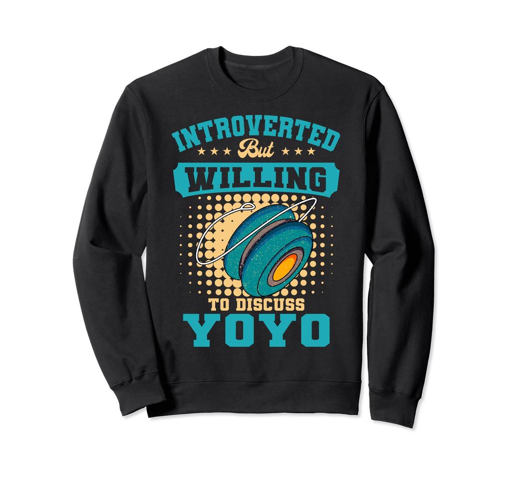 Introverted but willing to talk yo-yo - Introverted design perfect for yo-yo players, yo-yo masters, and yo-yo masters. Awesome for anyone who plays yo-yo. A spool-like toy with a string wound on one end that can be spun up and down.