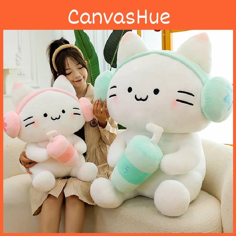 Plush Toys Cat Headset Milky Tea Cartoon Animals Fill Doll Xmas Gifts Garnish