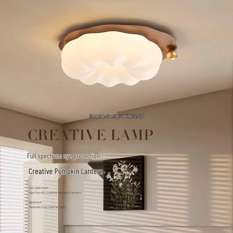 Chinese-Style Walnut Bedroom Ceiling Light: Smart Pumpkin Design, Super Bright, Eye-Protecting Fixture