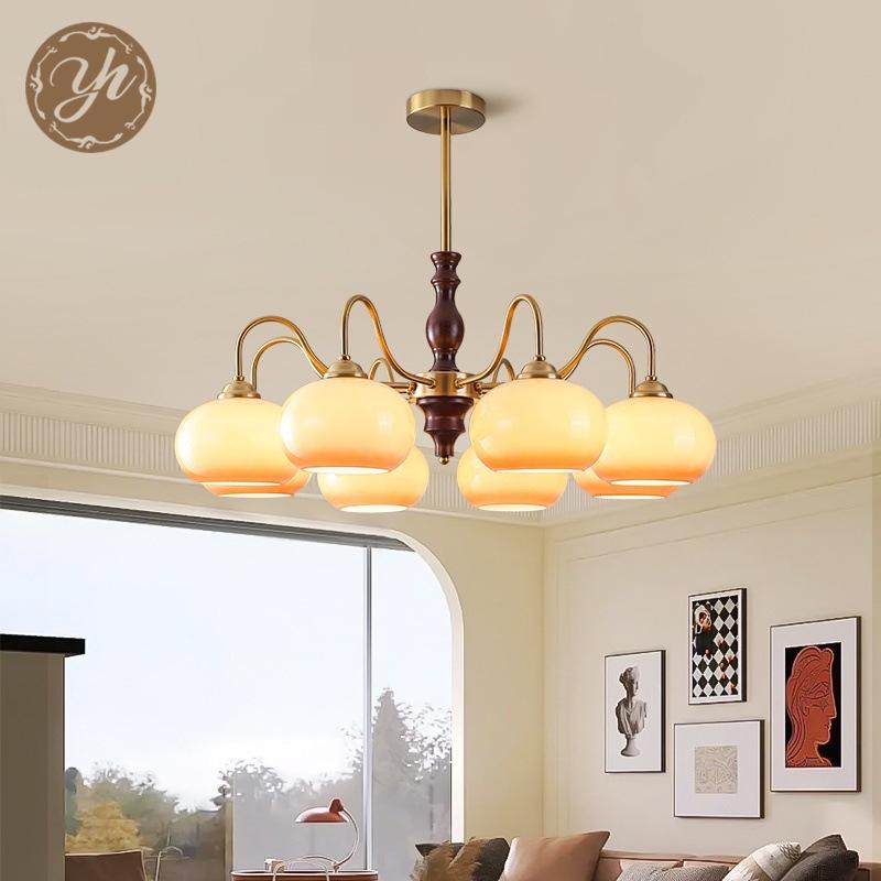 Wabi-Sabi Vintage Persimmon Pendant Light - Retro Solid Wood Eye-Protecting Fixture for Living Room, Study, Bedroom