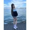 Koreańska Dziewczęca Bluza Patchworkowa Koronkowa Koronka dla Kobiet na Jesień Zimę Top z Odkrytymi Ramionami
