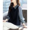 Dwuczęściowy wygląd Bluza z kapturem z długim rękawem w blokach kolorystycznych Wiosna Jesień Nowy styl Luźny pulower Modny wszechstronny design Damski top