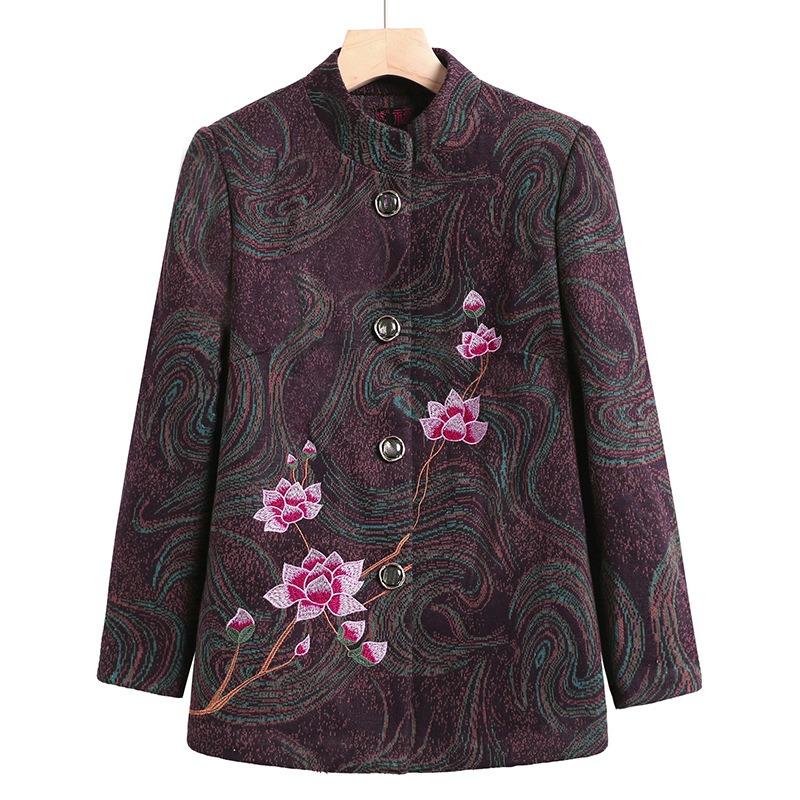 Women's Embroidered Jacket New Stand-Up Collar Top Winter Fleece Gown