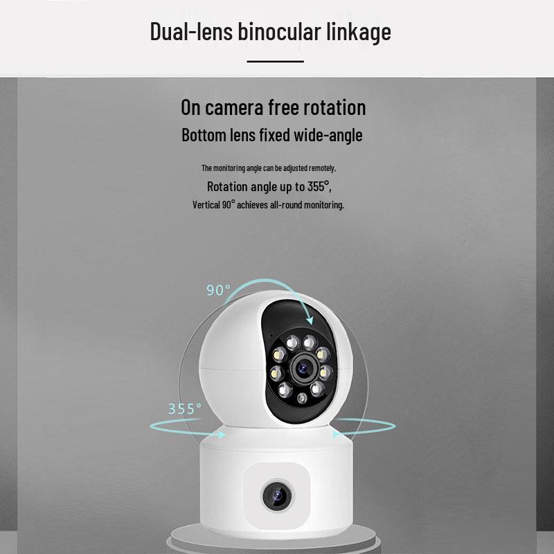 1080P Dual-Lens Wireless Security Camera with 360° Rotation, Mobile Remote, Dual-Screen, and Full-Color Night Vision
