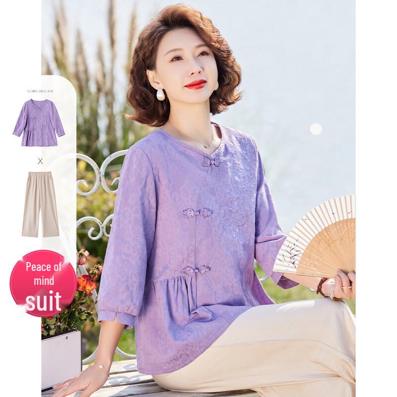 Pa Si Te Damski Letni Zestaw Dwuczęściowy w Chińskim Stylu