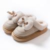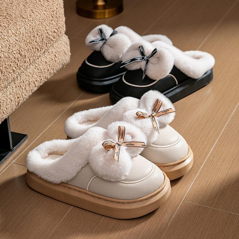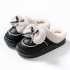 Urocze bawełniane wodoodporne kapcie z kokardką dla kobiet, jesienno-zimowe kapcie futerkowe dla par, ocieplane polarem, z pogrubioną podeszwą, ciepłe bawełniane kapcie