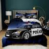 Poszewka na kołdrę z samochodem policyjnym Czarny zestaw pościeli dla dwóch osób Samochód policyjny Poszewka na kołdrę z kreskówki Pojazd Czerwony Policyjny Światła Poszewka na kołdrę z poliestru