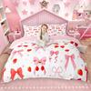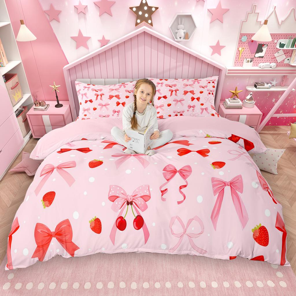 Homewish Kreskówkowy Zestaw Poszewki na Kołdrę z Kokardką 2szt./3szt. dla Dziewczynek, Różowy Zestaw Pościeli z Kokardą, Księżniczkowy Zestaw Pościeli z Wstążką