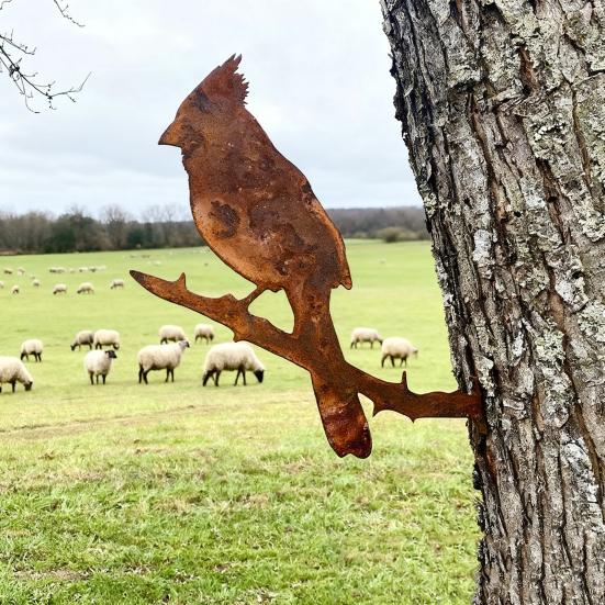 Rustykalny wzór ptaka: Udekoruj swój ogród lub płot tym rdzewiejącym metalowym ornamentem z sylwetką ptaka. Jego rustykalny urok dodaje mu vintage'owego charakteru, wnosząc charakter i osobowość do Twojej przestrzeni zewnętrznej.