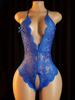 One-piece Blue Crotchless Bodysuits Sexy Women Open Bra Lingerie Sleeveless Deep V Transparent Babydoll Dress backless Bodysuit