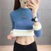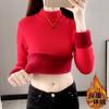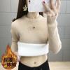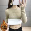 Fleece thickened round neck integrated fleece sweater women's top autumn and winter knitted sweater slim bottoming shirt with long sleeves inside