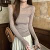 White semi-perspective splicing bottoming shirt women's pure desire soft waxy inner sweater slim wool knitted top
