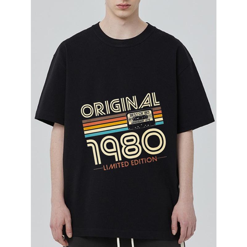 Oryginalna koszulka z limitowanej edycji z 1980 roku Czarna z wzorem retro kasety magnetofonowej do noszenia na co dzień i w stylu mody vintage