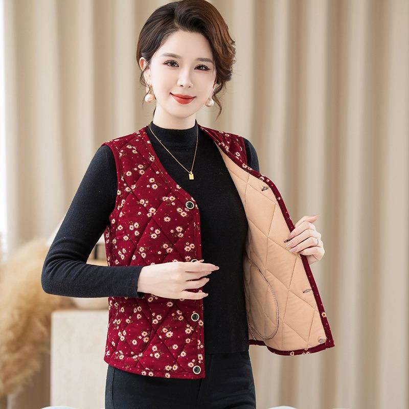 Kwiatowa kamizelka damska jesień i zima ciepła kamizelka do noszenia wewnątrz i na zewnątrz kamizelka podszewka