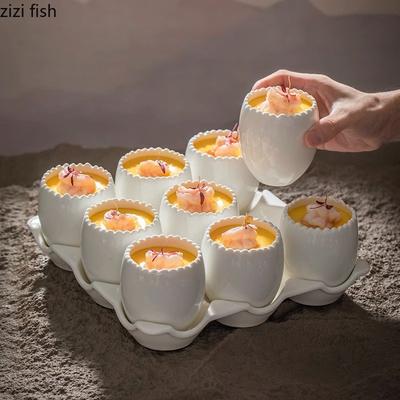 Kreatywny ceramiczny zestaw miseczek do gotowania jajek na parze Hotel Restauracja Miseczka deserowa Miseczka do gęstej zupy Gospodarstwo domowe Jednokolorowa zastawa stołowa w kształcie jajka