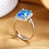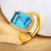 Retro Rectangular Sea Blue Full Diamond Colored Treasure Open Ring Women'S High Sense Light Luxury Ring Copper Jewelry
