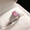 Full Diamond Flash Jewelry Simulation Pink Zircon Ring Women'S Light Luxury High-End Pigeon Egg Zircon Ring