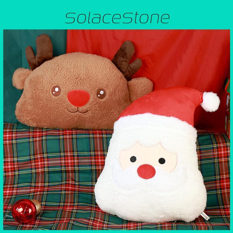 This plush Santa and reindeer pillow features soft, delivering a comfortable and durable decorative piece. it offers a festive touch for holiday decor. Ideal for Christmas celebrations, it can be placed on sofas or beds. Wipe clean with a damp cloth to maintain its appearance.
