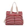 Minimalistyczna płócienna torba typu tote w paski - Wszechstronna torba na ramię dla kobiet, studentek i na co dzień