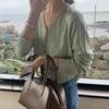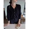 V-neck yellow long-sleeved knitted cardigan top, early autumn new lazy loose thin sweater jacket