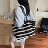 2025 Torba tkana w czarno-białe paski o dużej pojemności: Lekka Torba Jednoramienna dla Kobiet, Idealna na Wakacje i Zakupy.