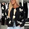 KOSY Sweter kardigan dzianinowy z nadrukiem kokardek Casual Damski sznurowany ażurowy z okrągłym dekoltem i długim rękawem Swetry damskie
